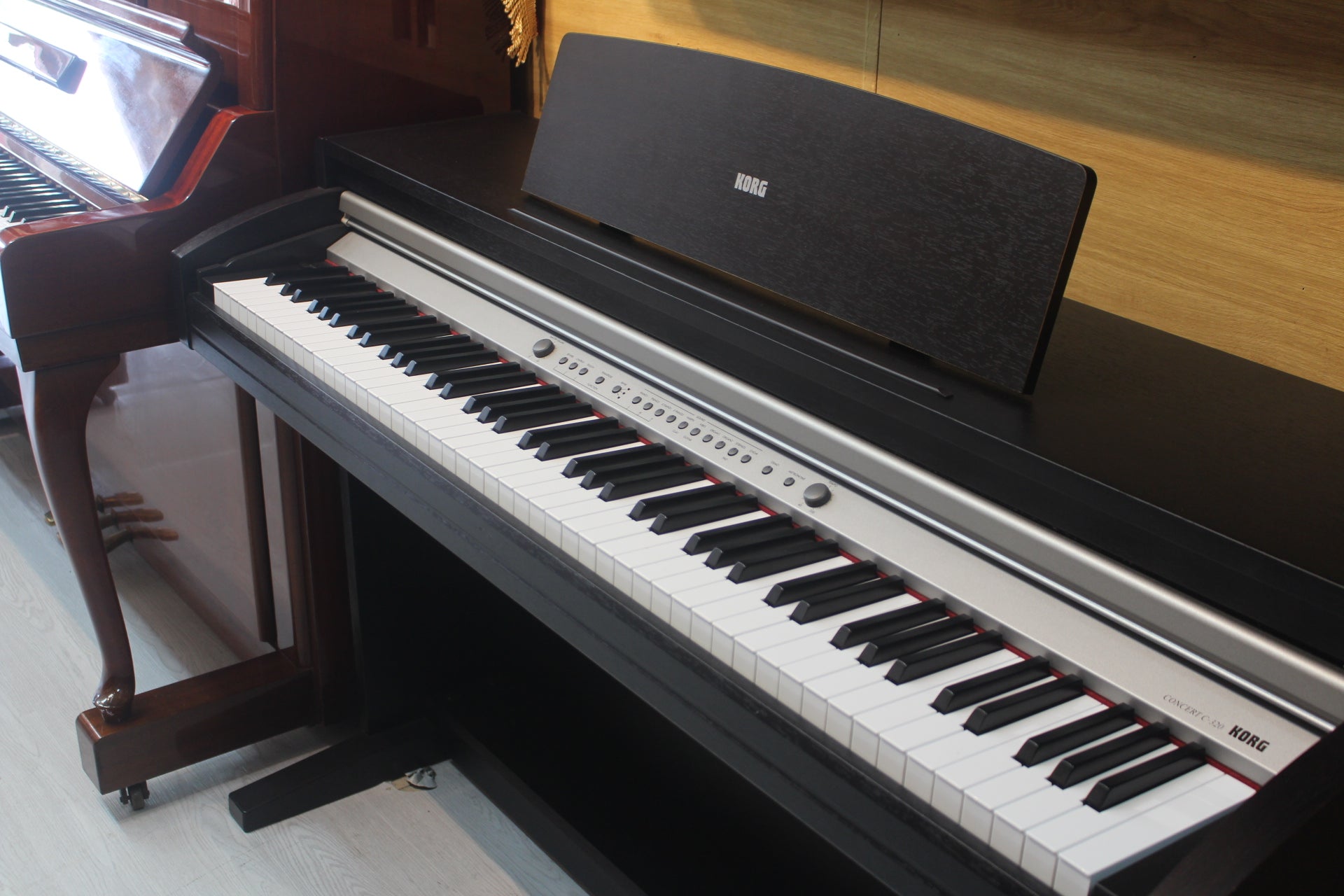 Korg C320 sở hữu dáng cabinet gọn gàng, hiện đại và tinh tế, phù hợp nhiều phong cách nội thất khác nhau. Gỗ hoàn thiện đẹp, tối giản và sang trọng – đem lại cảm giác piano truyền thống nhưng vẫn gọn gàng theo xu hướng hiện đại. Đây là mẫu piano lý tưởng cho gia đình, phòng học, phòng khách hoặc studio nhỏ.