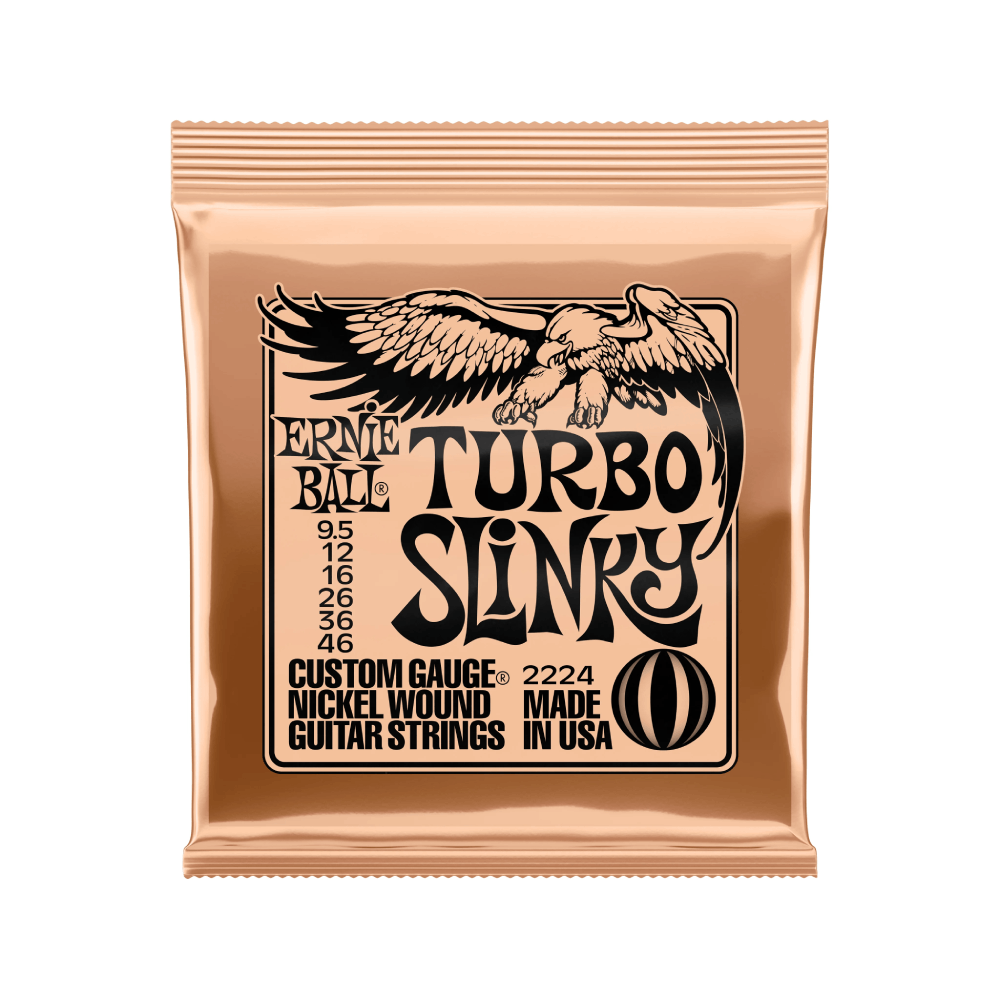Turbo Slinkys là hoà hợp giữa dây đàn Regular Slinky nổi tiếng và Hybrid Slinky nhưng vẫn có được cảm giác cân bằng, thoải mái suốt cả 6 dây. Kết hợp hoàn hảo này dành cho người chơi muốn tăng tính năng hoạt động nhưng không khác biệt quá lớn về chất âm và lực căng.